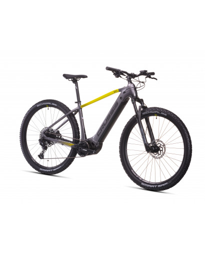 Díky plášťům SCHWALBE SMART SAM Performance projede elektrokolo terén hladce a efektivně – zvládne kořeny, štěrk i lesní cesty s větší jistotou a menší námahou. K tomu odpružená vidlice ROCKSHOX FS Judy Silver TK Solo Air se zdvihem 100 mm, která tlumí nerovnosti a přispívá k vyššímu komfortu i kontrole.
